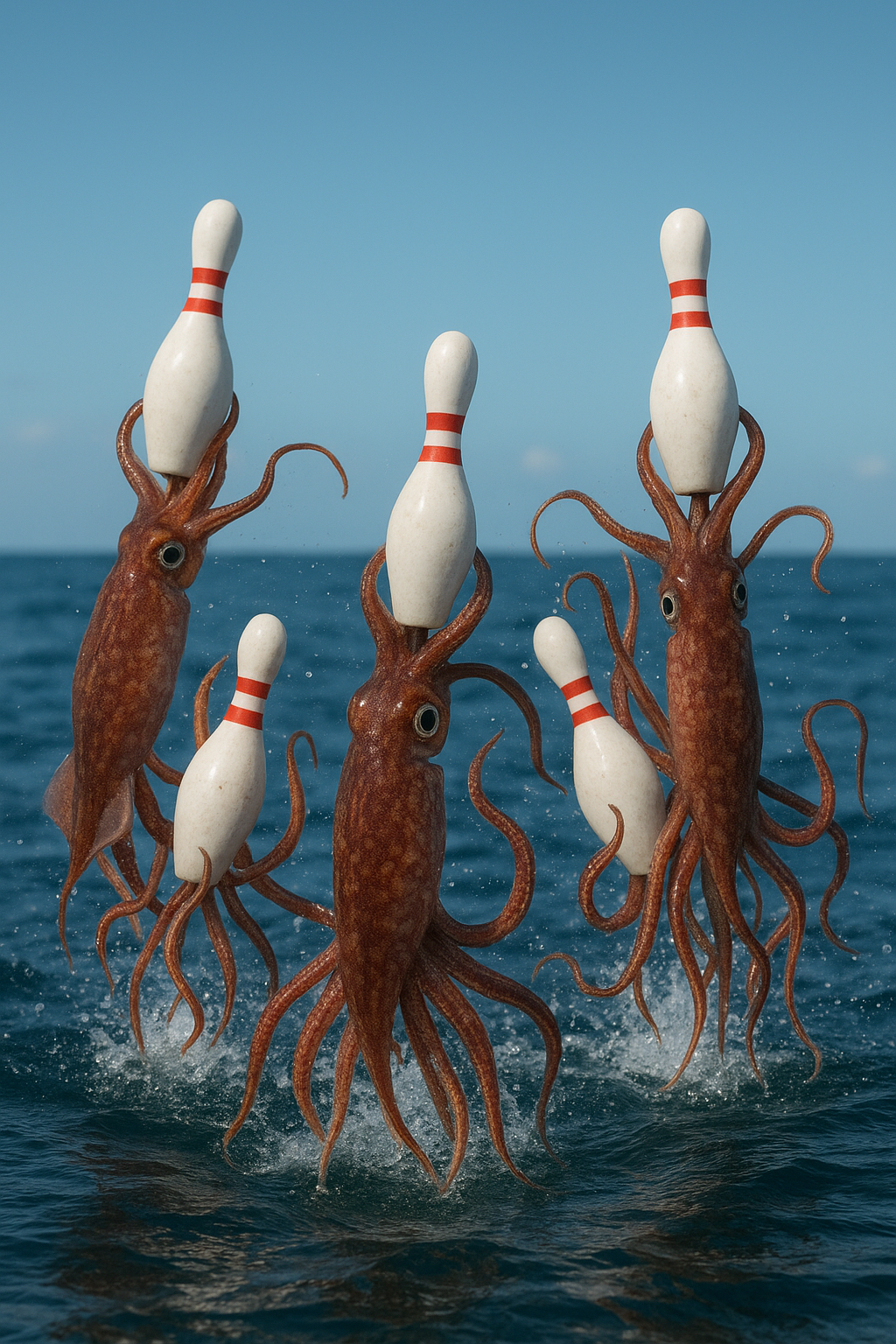 Squid Row rolled into the evening missing two members but still playing with the swagger of a team that keeps a victory dance in their back pockets “just in case.” They didn’t merely beat Bowls Deep — they pressure-washed them off the lanes in a three-game sweep that looked effortless enough to be rude. Matthew Taylor went full kraken with his volcanic 600 series — including that signature 238 — the kind of performance that makes nearby bowlers rethink their hobbies. Dennis Walling kicked things off with a crisp 177, setting a tempo that said, “Yes, we’re doing this, and no, we’re not sorry.” After the match, Taylor mused, “Some nights the pins just cooperate. Like toddlers bribed with snacks.” With the sweep they climb to 2nd place, fully aware they can’t catch No! Not Theo!, who already snatched the championship like a magician stealing your watch, but determined to finish the season loudly.