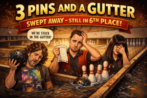 3 Pins and a Gutter dropped three games and the series, and the devastation clung to every frame that flirted with the pocket before sliding into the channel. Nathan Burrows went heroic with a 190 game far above his average and dragged the lineup to a 469 series, trying to haul the team out of the gutter by sheer willpower. JoAnne Barber delivered a night of controlled fire, beating her average in all three games and finishing with a 419 series highlighted by a 149 game, both of which stood as the women’s high marks for the week. Jesse Sauerbrei chipped in with a 111 game above his average and steadied the lineup with a 311 series, but the team name kept feeling uncomfortably prophetic. “We’re three pins and a gutter for a reason, but tonight the gutter felt personal,” Jesse sighed. One win gave them a brief gasp of hope, but losing three left the team quietly devastated, staring down how close so many frames came to changing the story. They remain in 6th place, holding steady in the standings despite the rough night.