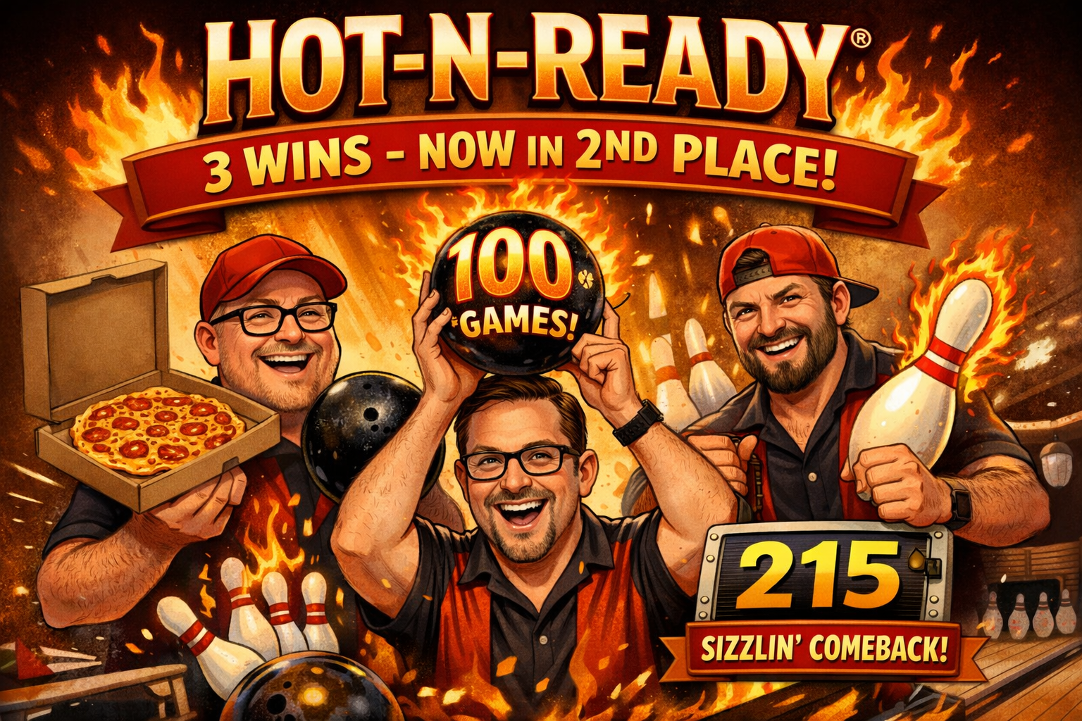 Hot-n-Ready® came out of the oven blazing, winning three games and the series, and the excitement felt like steam rolling off fresh pizza boxes. Nick Kinney fired a 203 game well above his average and backed it up with a strong 564 series, a night that also happened to mark his 100th career 200+ game, prompting him to shrug and say, “Guess I’ve been reheating this recipe for a long time.” Ian Estey matched the heat with a 212 game well above his average and piled on with a steady 559 series, turning the pocket into a brick oven for anyone standing too close. Seth Gunderson started the night ice-cold with a 156 game well below his average, then surged back with a roaring 215 game that swung momentum right back into Hot-n-Ready®’s favor when it mattered most. With Buck Nasty absent, the remaining trio still cooked up three wins and walked off buzzing, thrilled to see Hot-n-Ready® finally living up to the name. They now sit in 2nd place, climbing one spot in the standings this week.